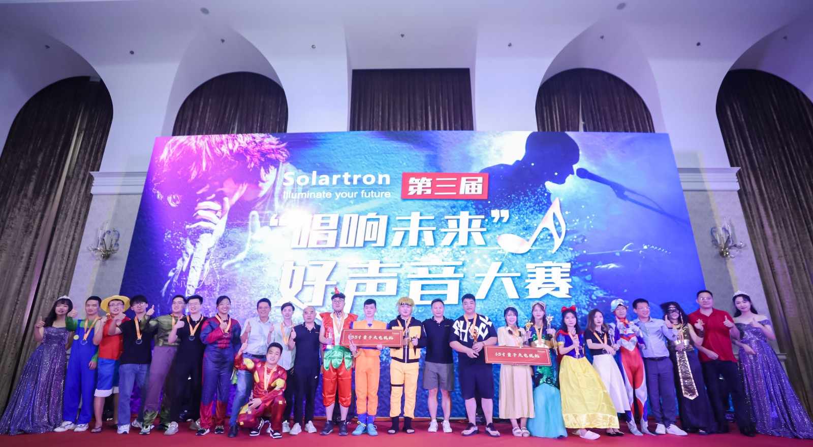 18:18分,10、9、8、7……呼吸随着屏幕的倒计时渐渐紧张,随着歌曲《一剪梅》伴奏的响起,晚会的序幕正式拉开。财务副总裁兼董事会秘书李辰、销售副总裁杨衷核、副总裁杨承翰、研发副总裁兼研究院院长周玉波,一起登台献唱,婉转却高昂,低沉又响亮的韵律点燃了晚会的热情,台下掌声不断,欢呼不绝,他们将自己对公司的浓浓情意融进音符之中。