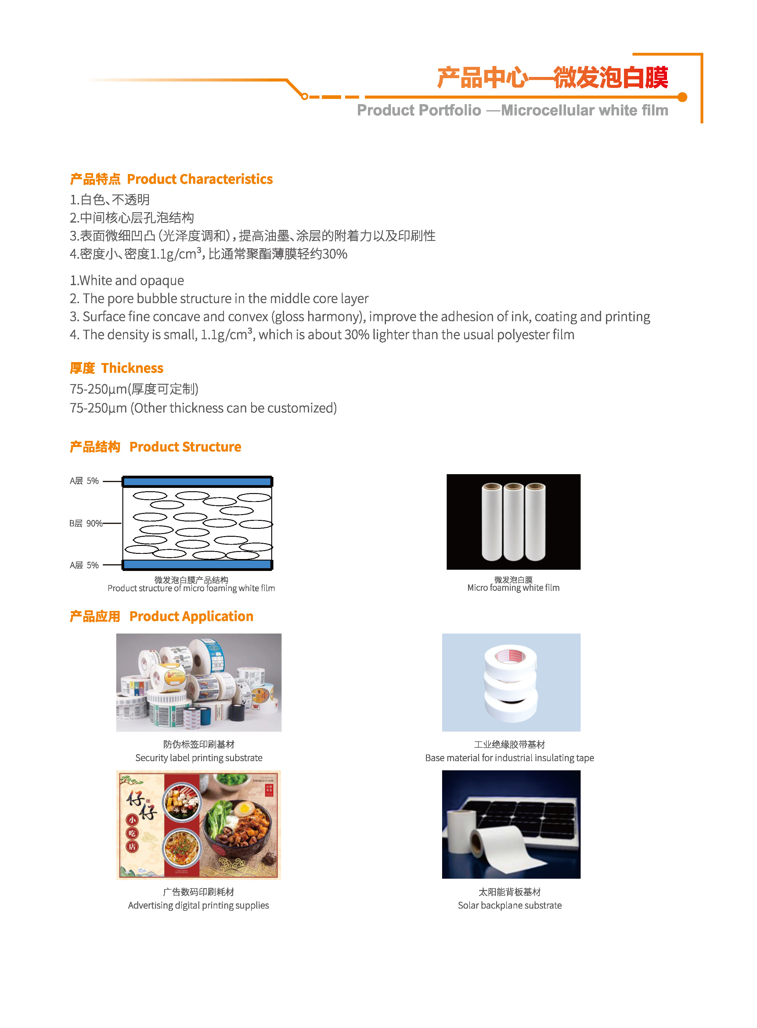 产品简介: 半导体柔性电路板(FPC)用耐高温自离型膜是指薄膜表面能有区分的薄膜,具有良好的耐温性、填充性和分离性,在FPC制备过程中,起着非常重要的作用,一方面可以防止覆盖的保护膜粘接,另一方面可以减少压合过程中溢胶、褶皱等缺陷的产生,有效地提高了FPC的合格率。 产品厚度: 50-120 μm (厚度可定制)